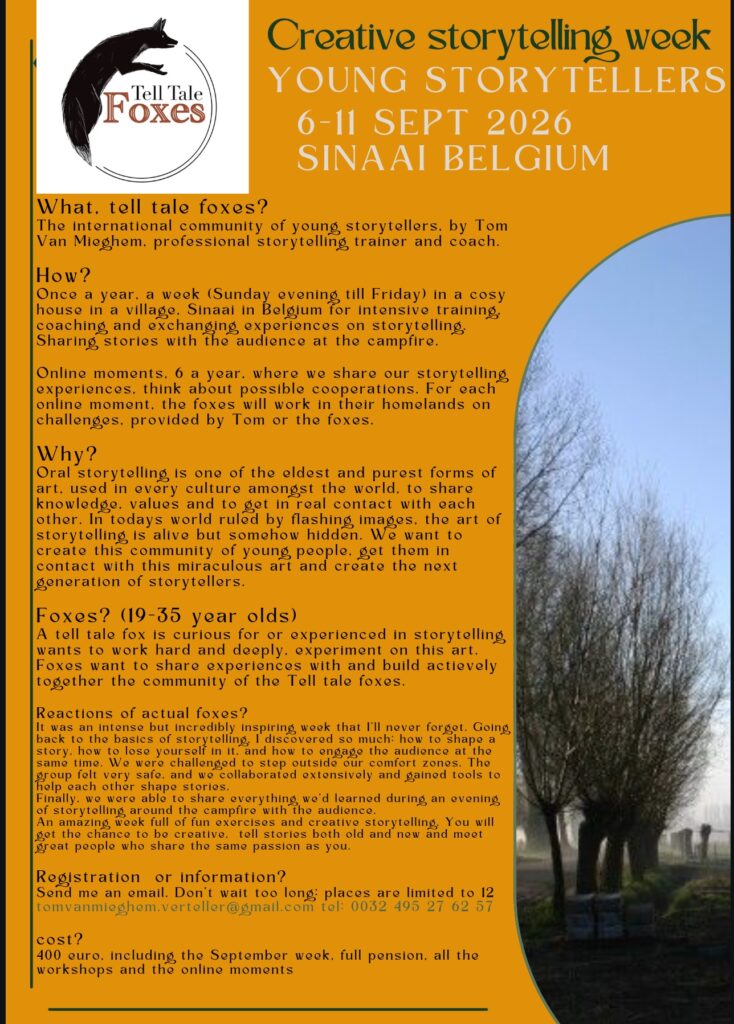 Schrijf in voor de eerste internationale week voor ‘Young Storytellers’ (tell tale foxes).