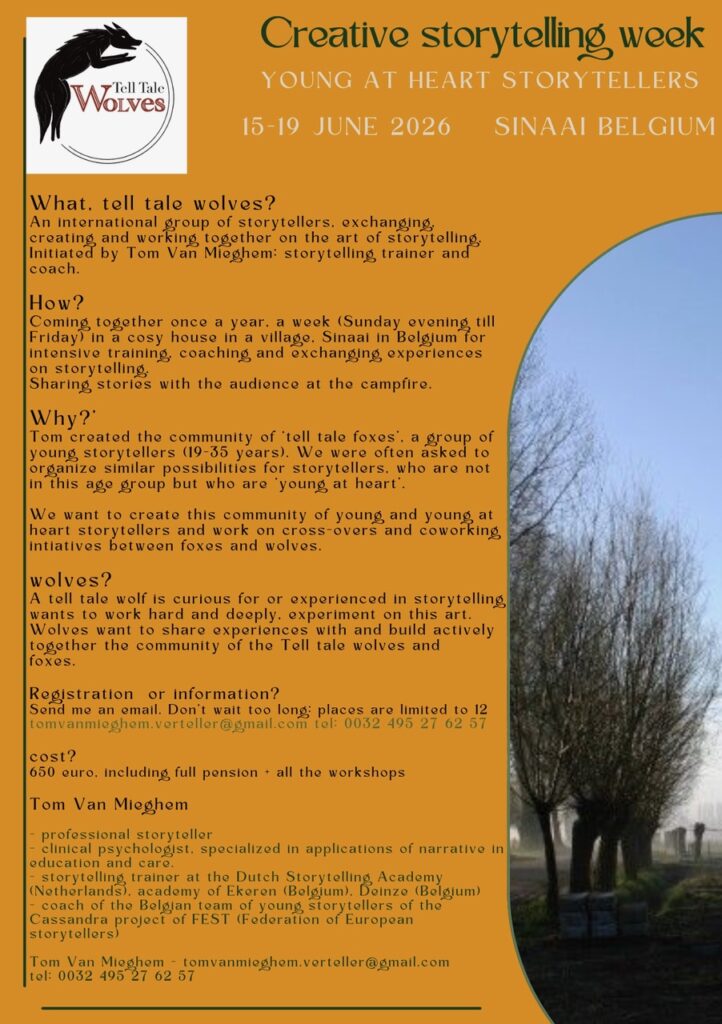 Of schrijf in voor de week voor ‘young at heart storytellers’ (tell tale wolves).